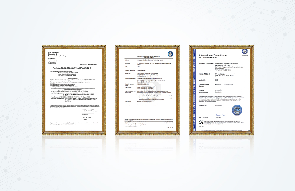 拓寬產品線PCIe、PATA、DOM、金勝維SATA系列產品通過CE、FCC、RoHS等權威認證